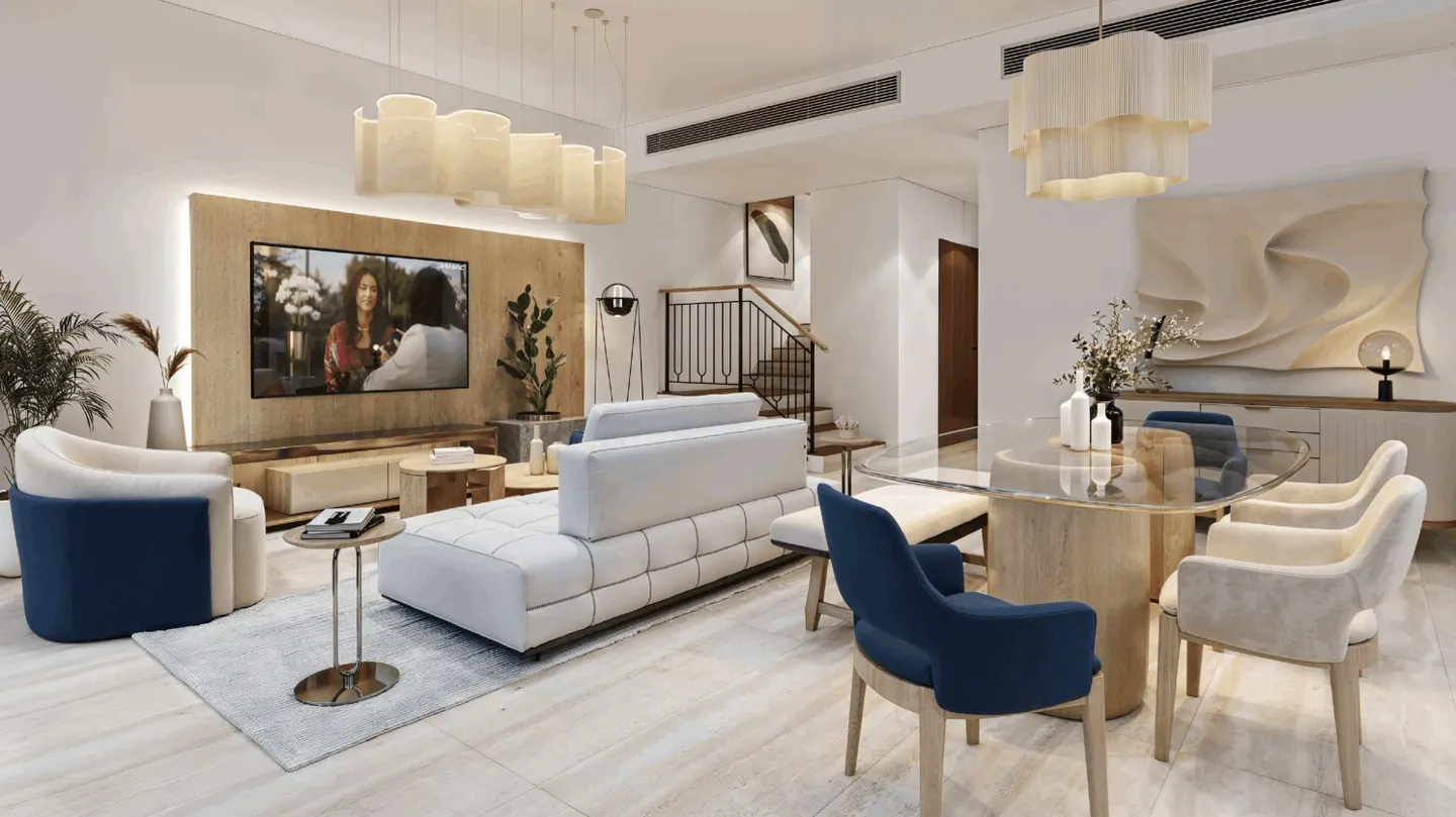 Damac Islands 2 – Barbados 2 is a project by Damac located in the Damac Islands 2 community, featuring townhouses with four and five bedrooms and villas with five bedrooms. The architecture blends tropical lines with modern minimalism, creating the atmosphere of a secluded island. Interiors are designed in light natural tones with walnut wood, Fior de Bosco marble, and Calacatta Gold porcelain finishes. Spacious layouts, private gardens, and pools offer the feel of a tranquil waterside retreat.